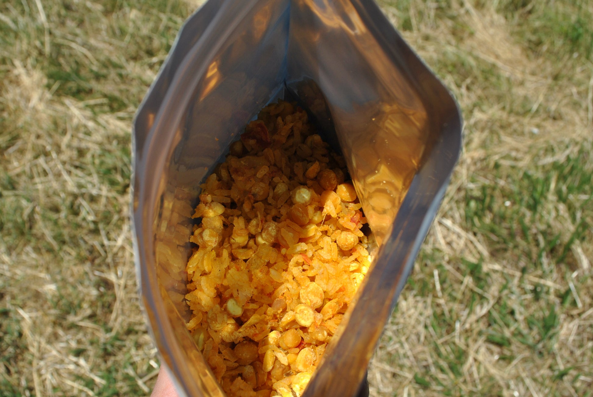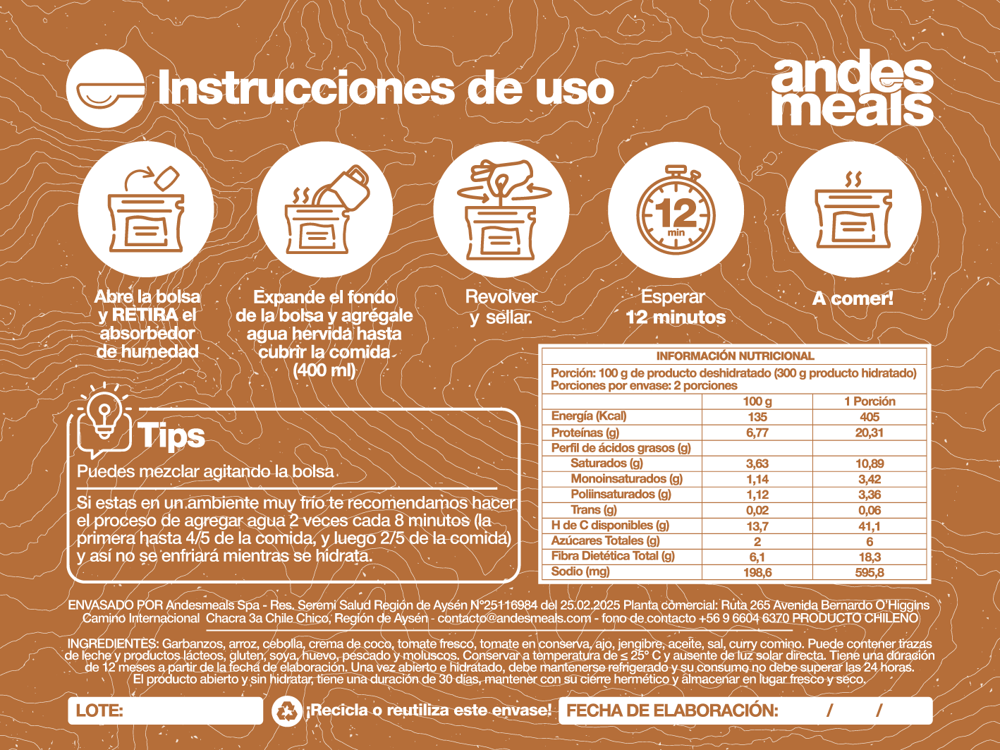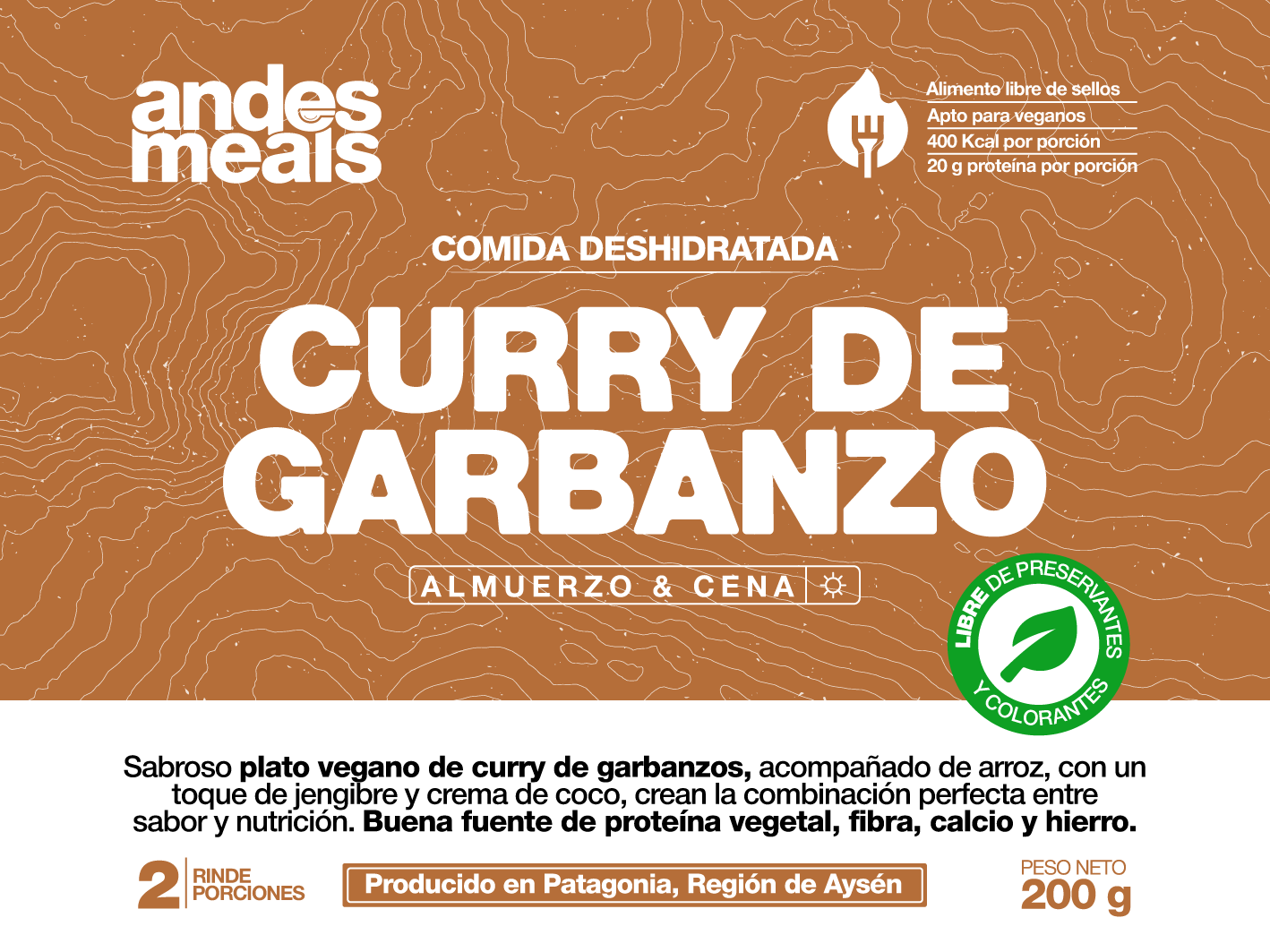 Dos porciones de Curry de garbanzos son 200 g de comida deshidratada.